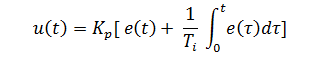 The controller output for PI controller is given by: