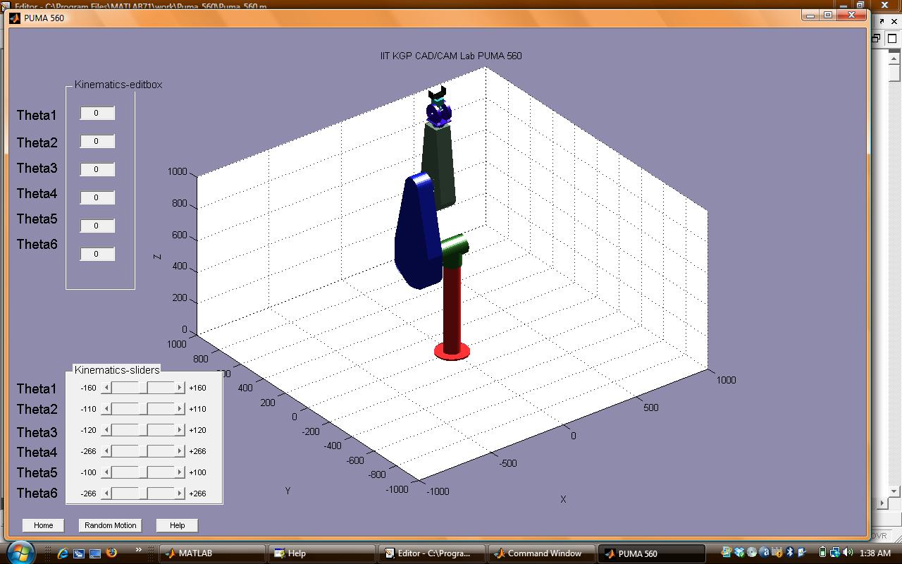 * The theory for mathematical computations was obtained from a wide variety of sources encompassing books and internet. The entire idea in short is to use a cad file of the model of PUMA 560 and use the principles of Forward Kinematics to get the new orientation of the PUMA robot, as per the parameters specified by the user. General Terminology in Robotics :