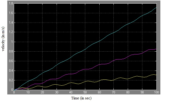 Response of velocities in with t , when only one step input force in x dir is given