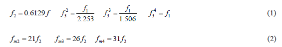 The input speed of gearbox is the mechanical speed of induction motor (f1).The lay shaft speed (f2), output shaft frequency (f3) and tooth meshing frequencies (fm2, fm3 and fm4) can be calculated by using equation 1 & 2.