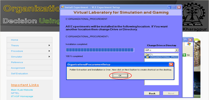 16. Experiment extraction and installation is over. Now click on "Ok" button.