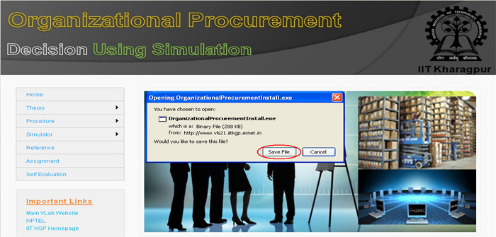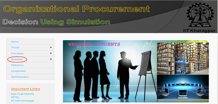1. Click on "Simulation of Organizational Procurement" menu.