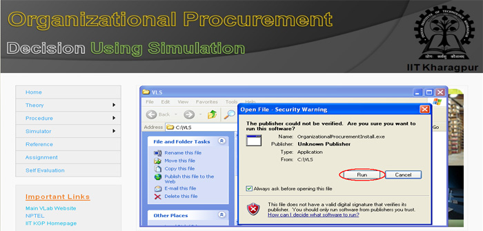 4. It will prompt to save (run) the "OrganizationalProcurementInstall.exe " file in your disk.